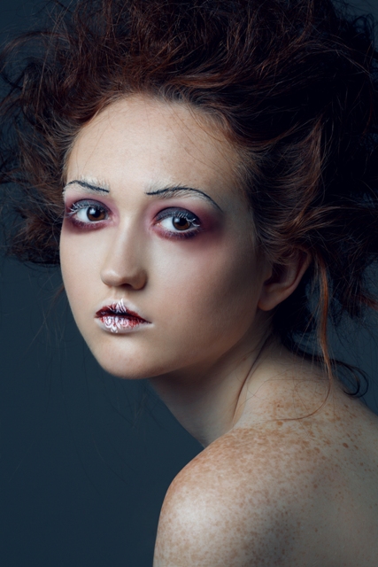 Τέλος, όλο το πρόσωπο έχει περαστεί με ένα πορσελάνινο foundation ενώ το μέτωπο και το σώμα έχει παραμείνει άθικτο διαγράφοντας τις φακίδες της Ντίας για να δείξουμε την παιδικότητα και την αγνότητα των ελπίδων που είχαμε ως παιδιά.